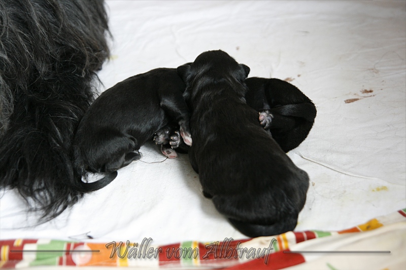 Unser C-Wurf war ein kleiner Wurf, aber alle drei sind gesund und kräftig. Pepper und Cibi haben sich auf Anhieb gut verstanden. Denno ch hat es eine Weile gedauert bis es dann soweit war. Alle drei Schwarz, wie die Mama.